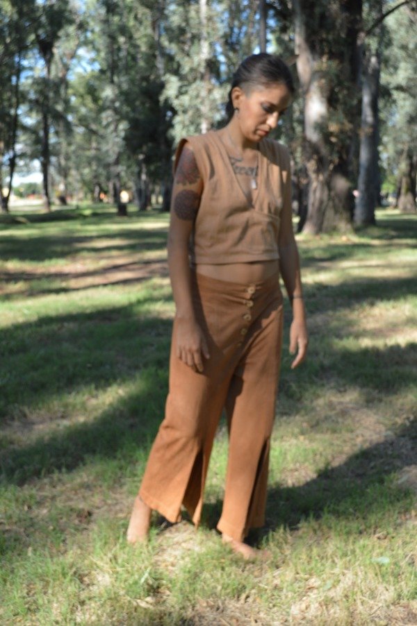 Hola, somos Éter. Hacemos ropa de algodón natural y agroecológico cómoda, sin género y teñida natural y artesanalmente con vegetales. Se usan además lanas naturales y sintéticas sólo si son descartes textiles; también hilos de algodón aplicados en bordados y botones de madera. Y todo lo referido a packaging es biodegrabale: papel plantable o reciclado, bolsas de almidón y cintas hechas con el mismo algodón de descarte. Gracias por estar acá.